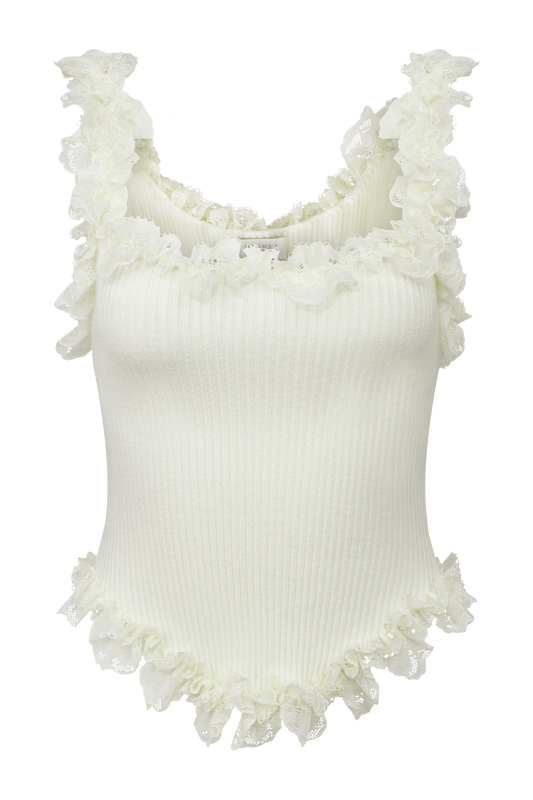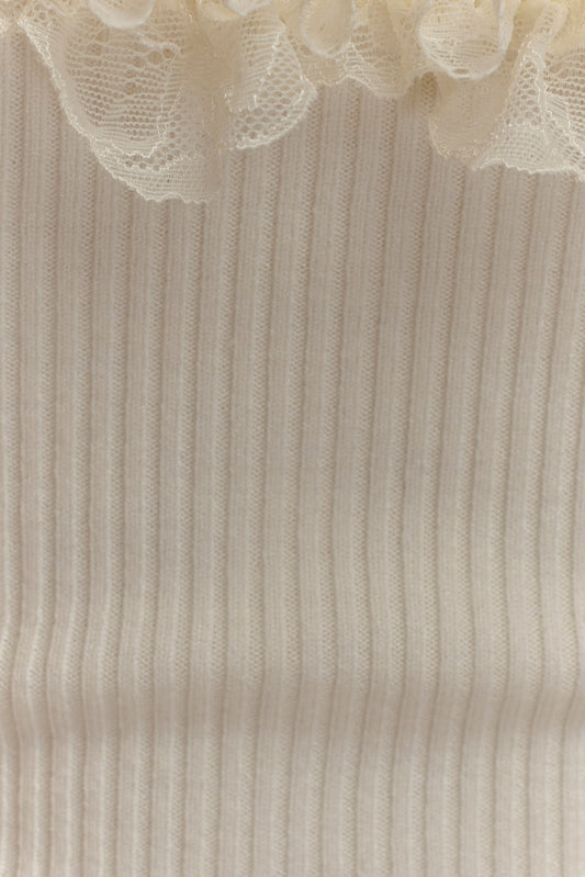 Regular price£55-27% Off Sale price £40Unit price / per20% OFF AT CARTShay Lace Ruffle Knit Top - Cream