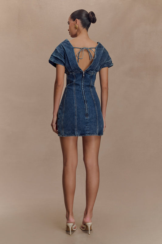 Eugenie Collared Denim Mini Dress - Dark Blue