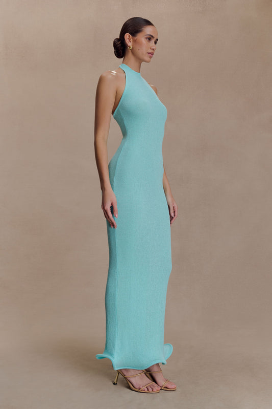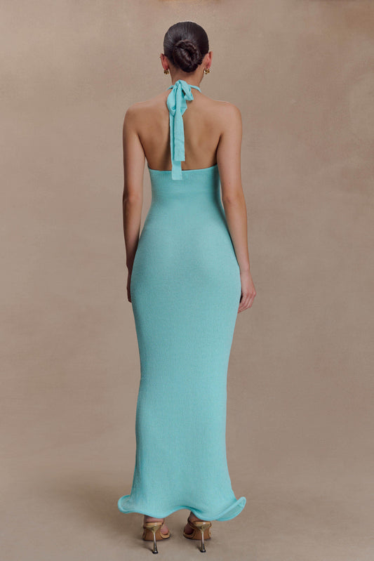 Melodie Halter Knit Maxi Dress - Cyan Blue