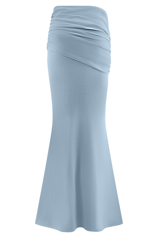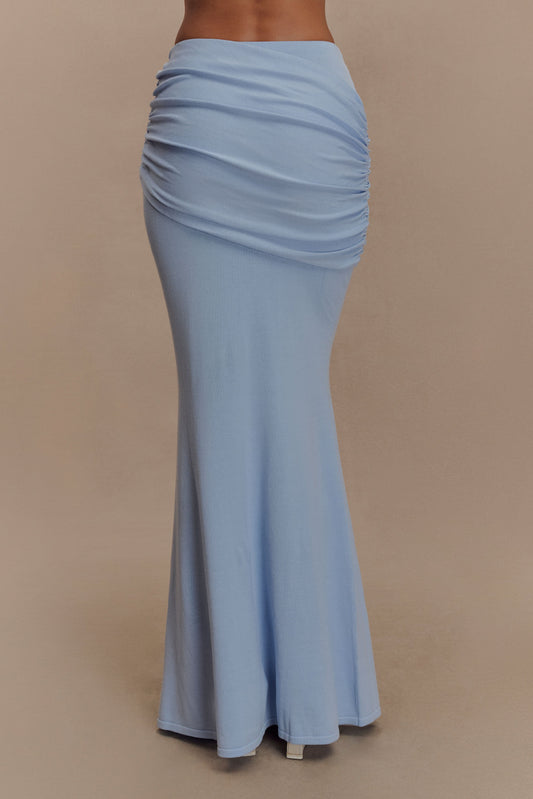 Gathered Knit Maxi Skirt - Blue