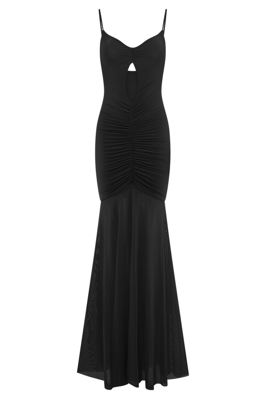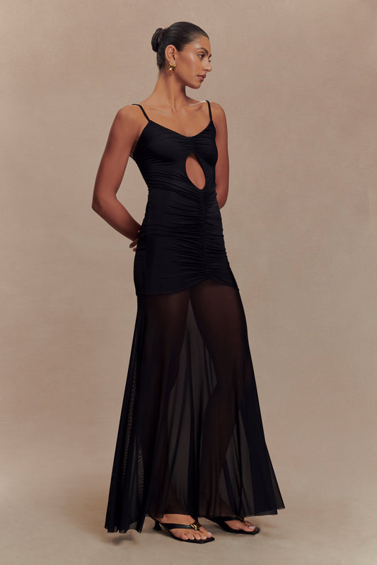 Aubree Crepe And Mesh Maxi Dress - Ivory