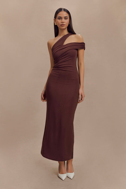 Anastasia One Shoulder Modal Midi Dress - Mahogany