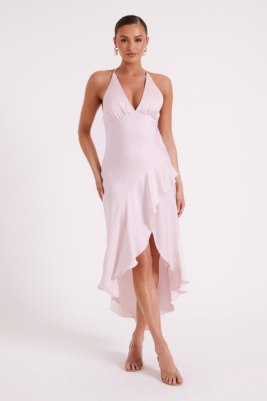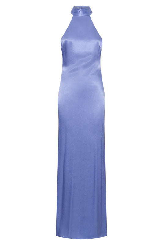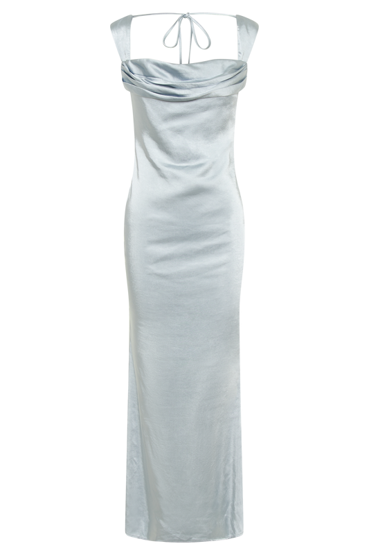 Lacey Backless Satin Maxi Dress - Ice Blue
