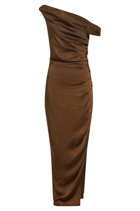 Arianne Draped Satin Maxi Dress - Dark Chocolate