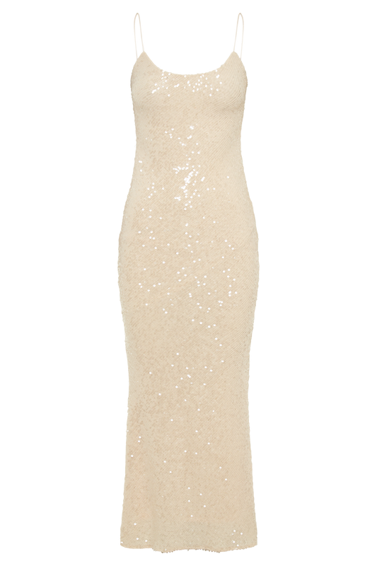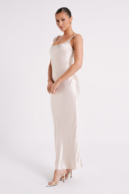 Jade Cowl Neck Backless Maxi Dress - Bone