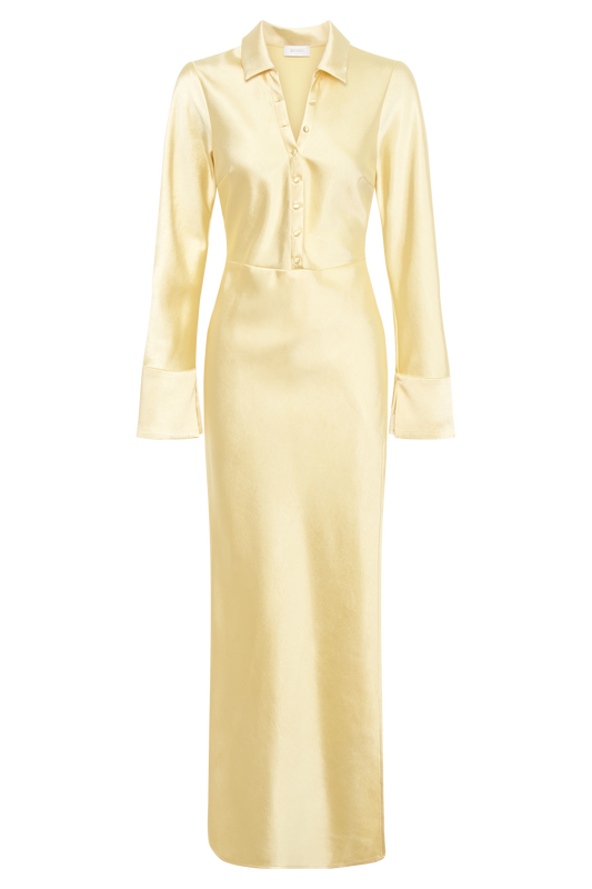 Whitley Satin Collared Maxi Dress - Dark Brown