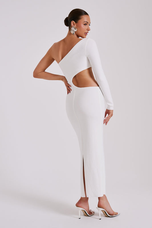 Alisson Hot Fix Crepe One Shoulder Maxi Dress - White