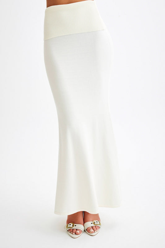 Karlie Knit Maxi Skirt With Ribbed Waist - Ivory