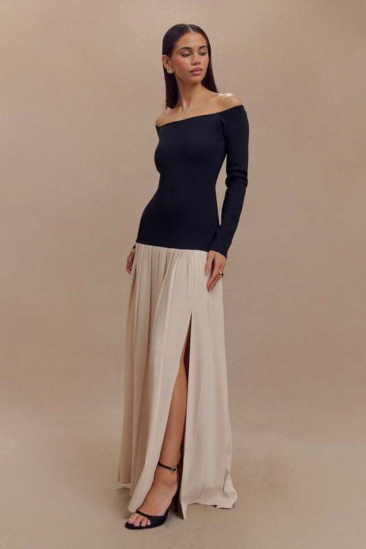 Presley Contrast Knit Off Shoulder Maxi Dress - Navy And Cream