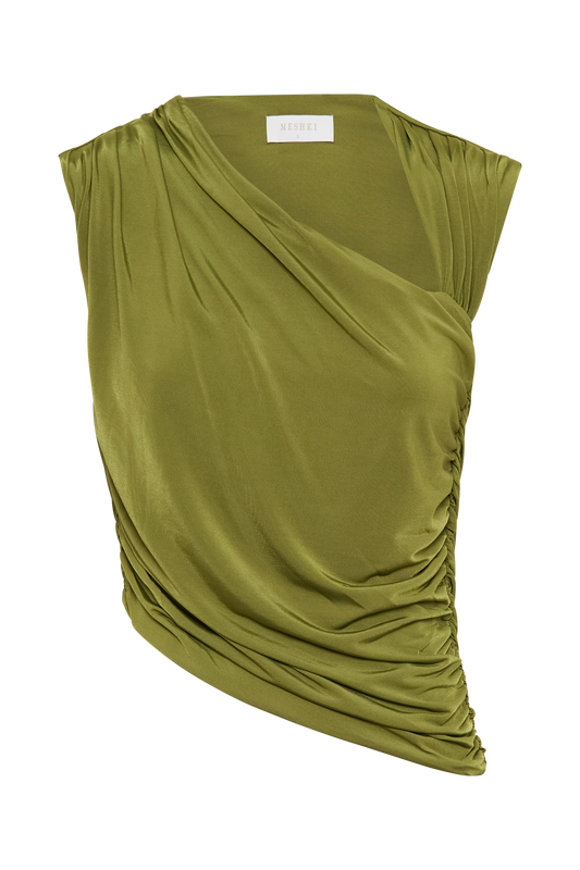 Griselda Draped Slinky Sleeveless Top - Vintage Olive