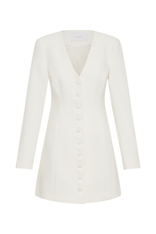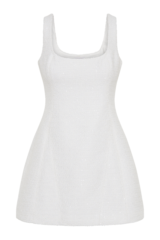Jolie Boat Neck Suiting Mini Dress - Ivory