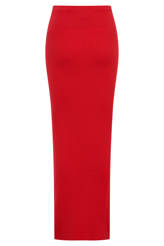 Ribbed Knit Maxi Skirt - Ruby