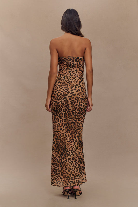 Breanna Strapless Chiffon Maxi Dress - Leopard Print