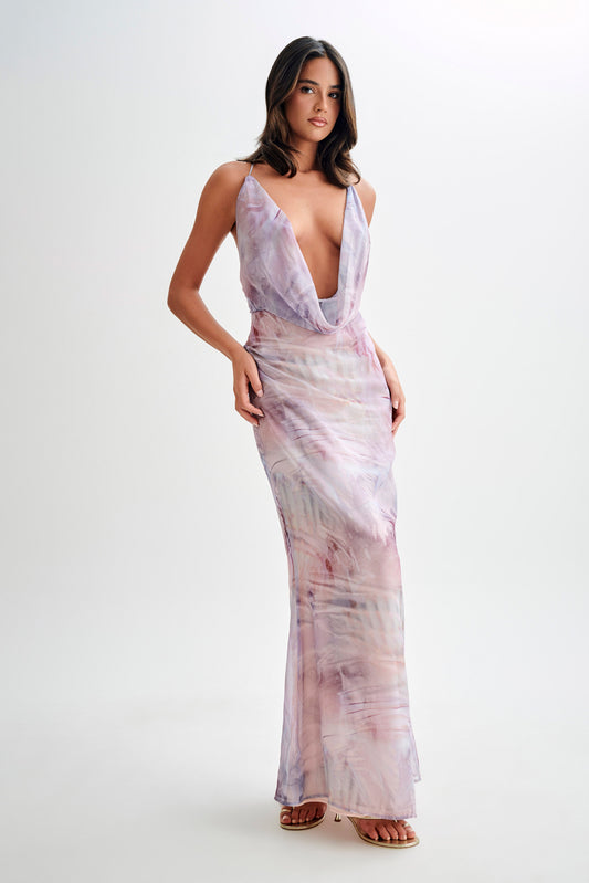 Attina Cowl Chiffon Maxi Dress - Mermaid Shell Print