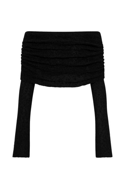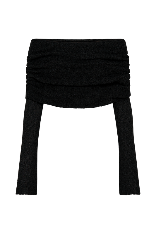 Off Shoulder Knit Long Sleeve Top - Charcoal Marle