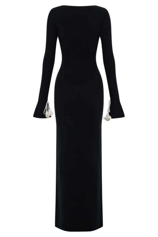 Erica Knit Maxi Dress With Floral Ties - Black And White