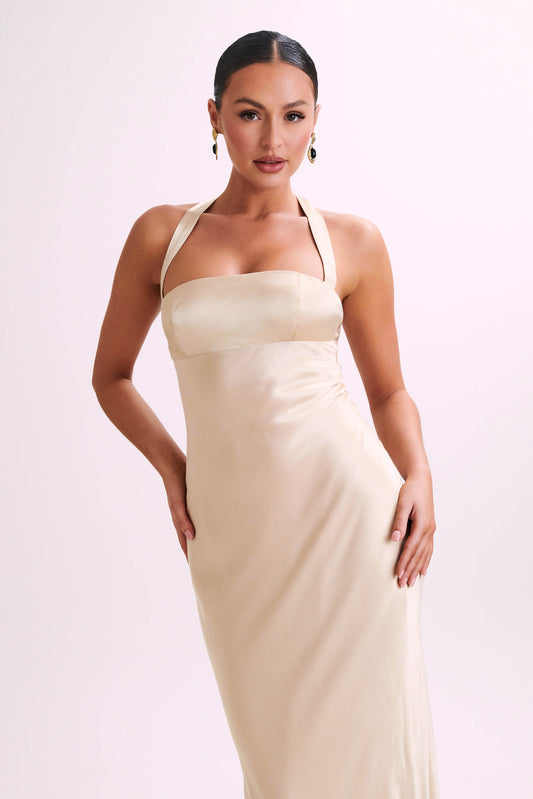 Claudette Strapless Satin Maxi Dress - Burnt Orange