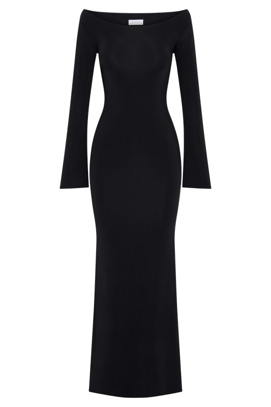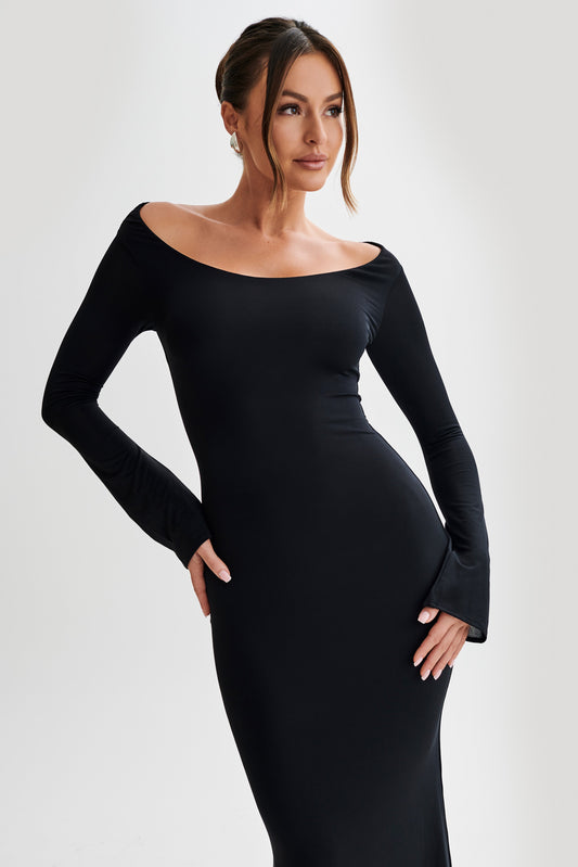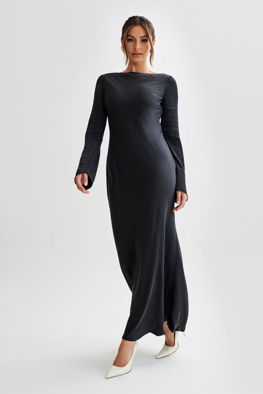 Rayleigh Long Sleeve Satin Maxi Dress - Black