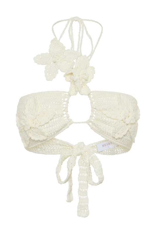 Skye Floral Crochet Tie Up Bikini Bottom - Ivory
