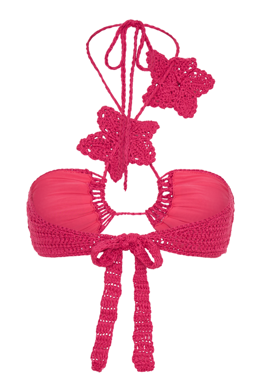 Sachi Triangle Bikini Top With Braided Ties - Pale Pink