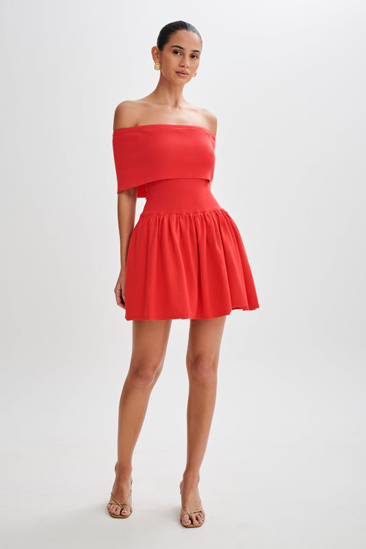 Regular price£69-49% Off Sale price £35Unit price / per20% OFF AT CARTLydia Off Shoulder Knit Mini Dress - Red