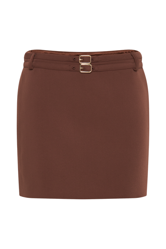 Letitia Suiting Mini Skirt With Buckle - Wood
