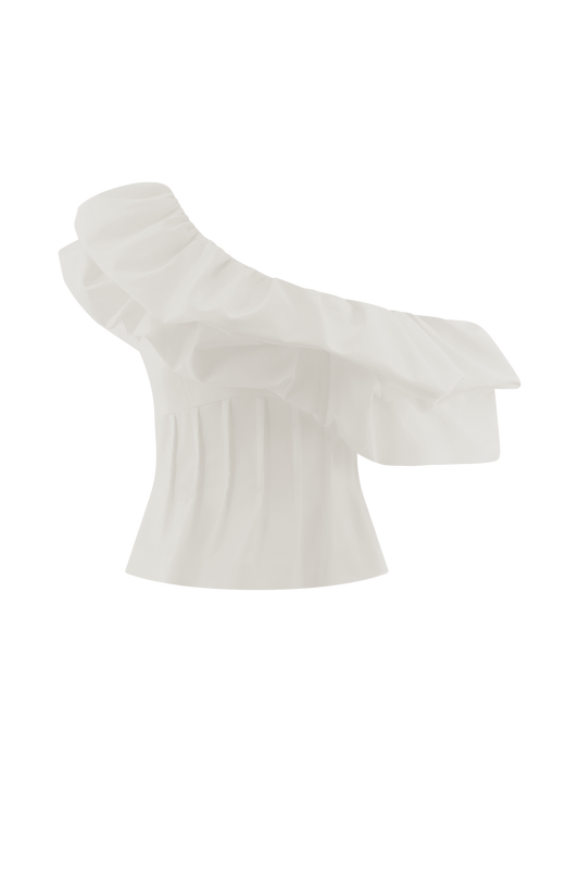 Debbie One Shoulder Bubble Top - White