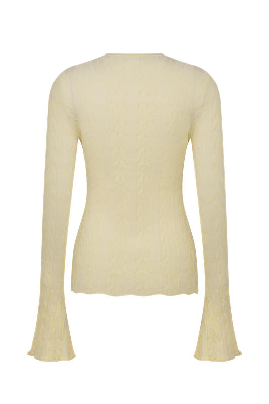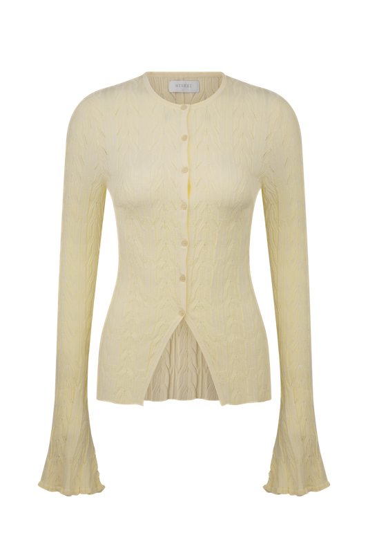 £89-20% Off Sale price £71Unit price / per20% OFF AT CARTAmy Pointelle Bell Sleeve Cardigan - Lemon