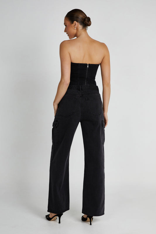 Camryn Off Shoulder Tie Knit Mini Dress - Charcoal