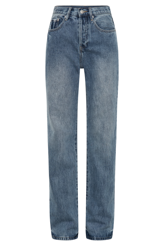 Janine High Waisted Straight Leg Jeans - Washed Mid Blue