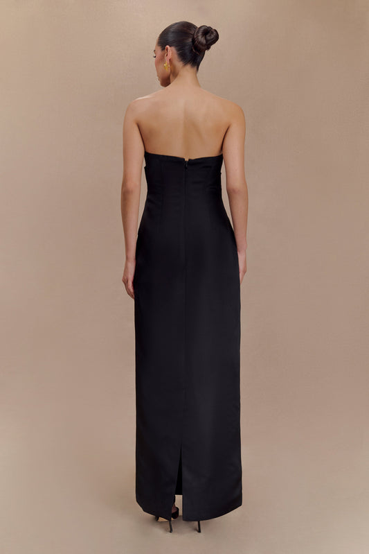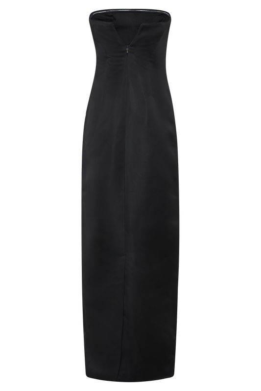 £199-57% Off Sale price £85Unit price / per20% OFF AT CARTCyrill Strapless Satin Structured Maxi Dress - Black