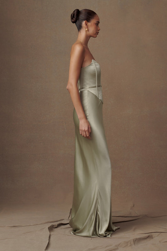 Satin Strapless Maxi Dress - Sage