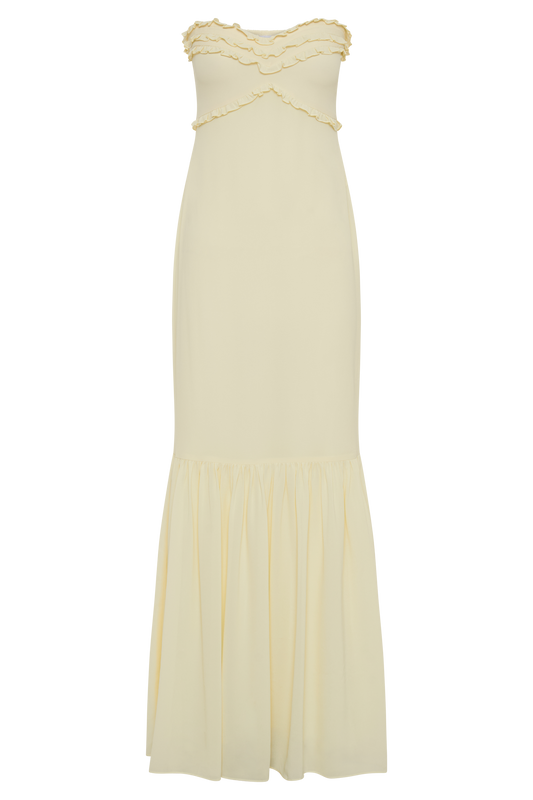 Olivette Strapless Chiffon Maxi Dress - Lemon Sherbet