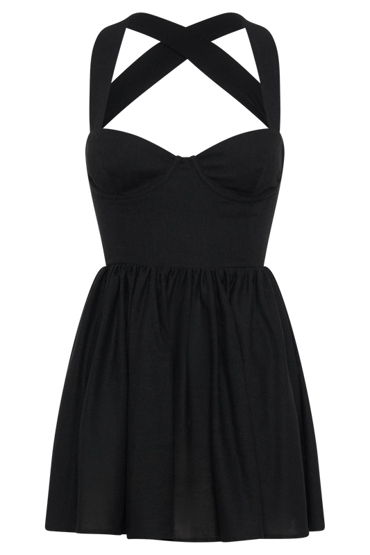 Tie Back Linen Mini Dress - Black