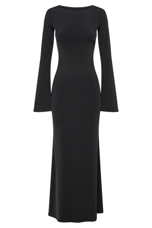 Slinky Fishtail Maxi Dress - Black