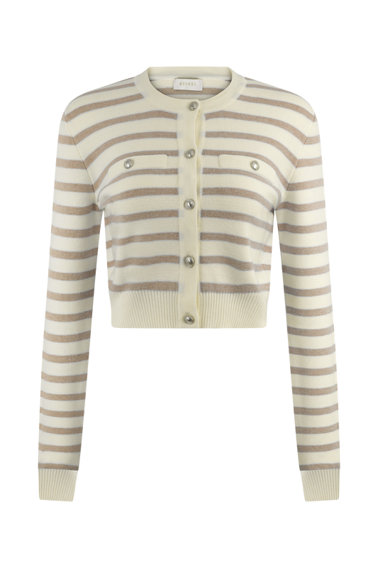 Regular price£75-40% Off Sale price £45Unit price / per20% OFF AT CARTTanner Striped Knit Cardigan - Nude/White