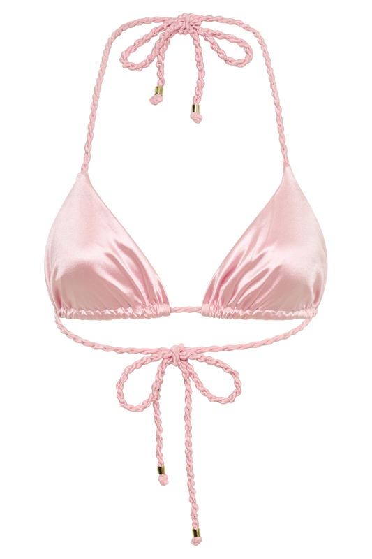 Triangle Bikini Top With Braided Ties - Pale Pink