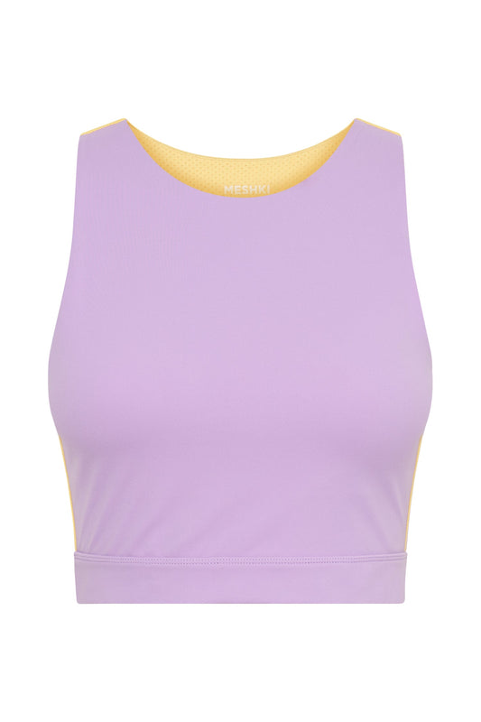Lori Two Tone Racer Crop Top - Lilac/Yellow