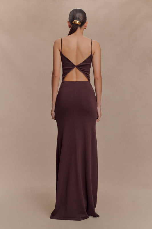 Wrap Over Knit Maxi Dress - Chocolate