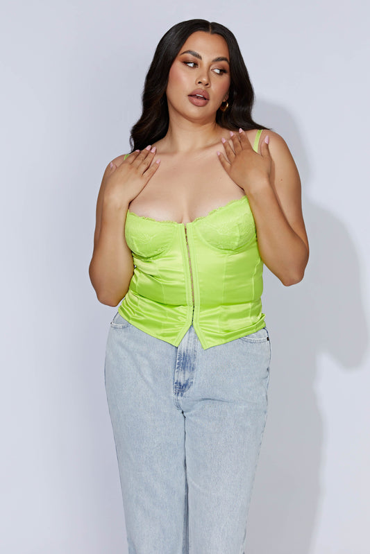 Regular price £13Sale price £13 Regular priceUnit price / per£55FINAL SALE 76% offClaudia Lace Satin Bustier Corset - Lime Green