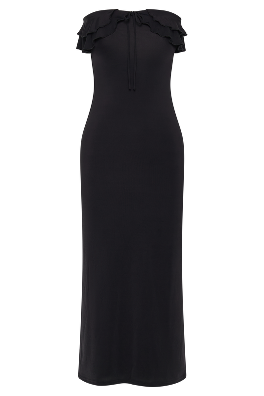 Bea Strapless Slinky Ruffle Midi Dress - Black
