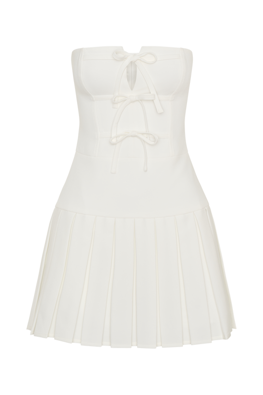 £9965% offNaya Pleated Mini Dress With Ties - White