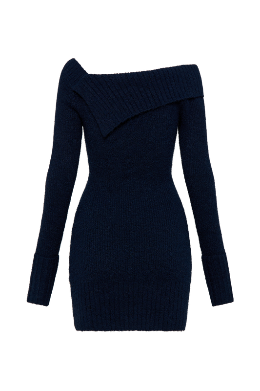 £7941% offStephanie Asymmetric Knit Mini Dress - Dark Navy