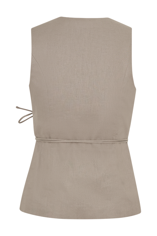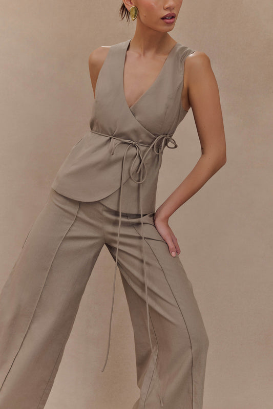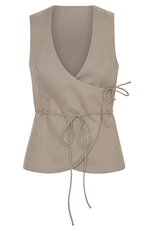 Brandi Linen Sleeveless Wrap Top - Pebble