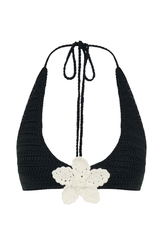 Rhiannon Floral Crochet Halter Bikini Top - Black And White