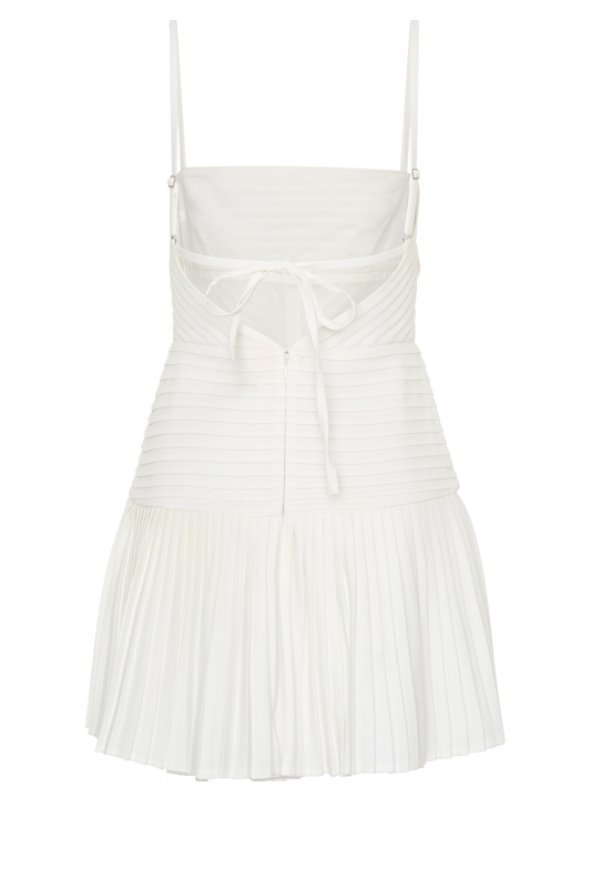 Multi Pleat Mini Dress - White