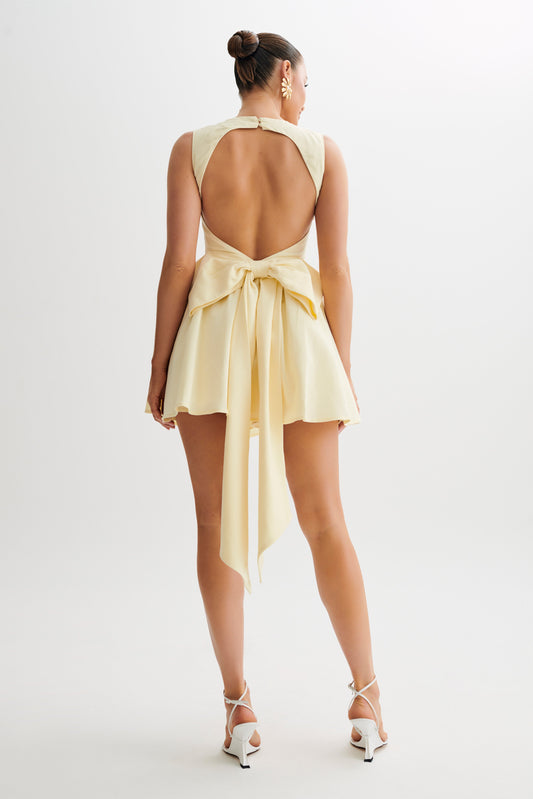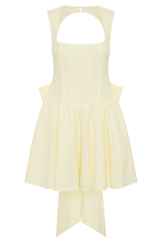 Marcella Linen Bow Back Mini Dress - Lemon Sherbet
