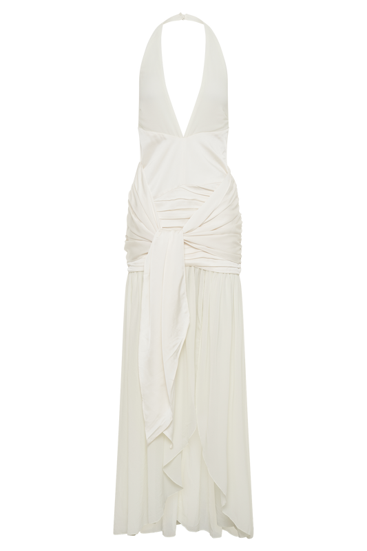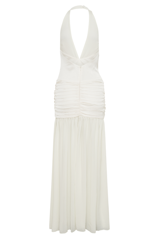 Graziana Satin Chiffon Plunge Maxi Dress - Ivory