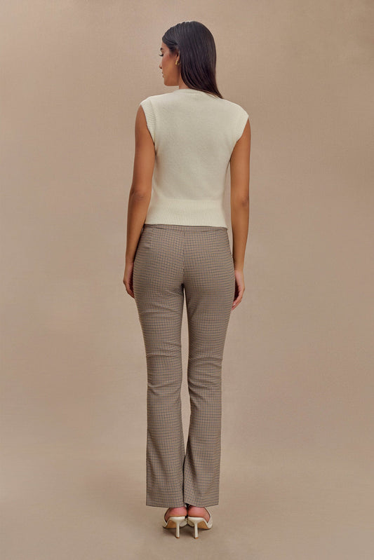 Mid Rise Buckle Straight Leg Pant - Tan Check