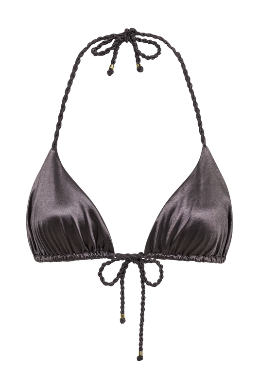 Triangle Bikini Top With Braided Ties - Gunmetal